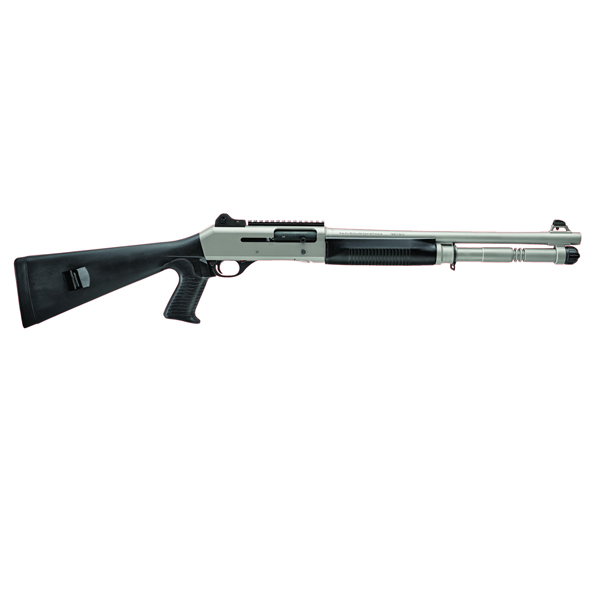 Benelli’s M4 Tactical is a unique Auto Regulating Gas-Operated (A.R.G.O) semi-automatic shotgun, upon which the U.S. Marine Corps depends. The M4 Tactical comes standard with a Picatinny rail and tactical stock. Other features include a fully adjustable ghost-ring aperture rear sight and windage-adjustable front sight. The M4 is also available with a durable, weather-beating Titanium Cerakote finish.