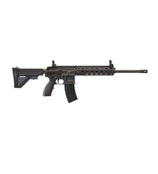 Ambidextrous operating controls are standard on the MR762A1, including a convertible charging handle and an ambidextrous selector lever. The MR762A1 uses the same 10- and 20-round translucent polymer box magazines made for the HK417; a 5-round magazine is also under development. MR762A1 rifles are well-suited for a variety of applications including law enforcement tactical, police patrol, general sporting, and hunting (a 5-round magazine is under development).
